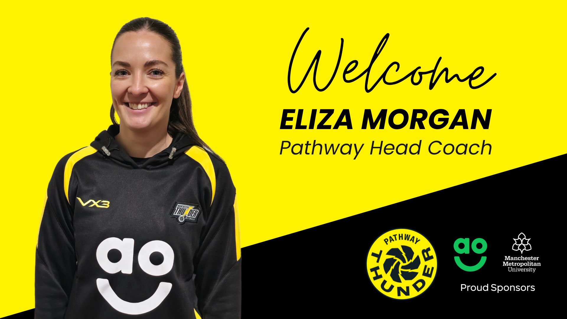 “She’s super positive, full of ideas and I can’t wait to see the impact she has on Manchester Thunder. Welcome to the team Eliza.” 🖤💛